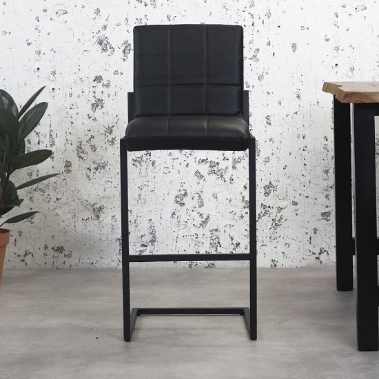 De zitting gemaakt van hoogwaardig PU kunstleder en metalen frame zorgen voor een industrieel uiterlijk.