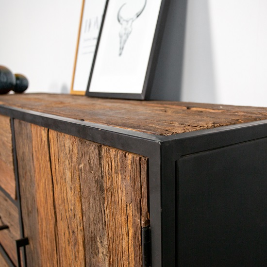 Dressoir stoer zwart metaal laden uitgevoerd in sleeper wood.