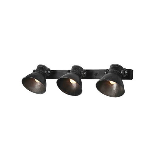 Industriële wandlamp metalen drie kap uitgevoerd met drie spots.
