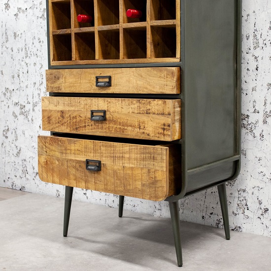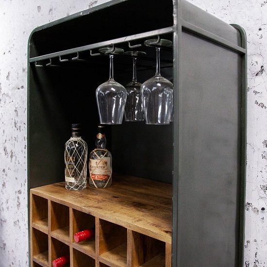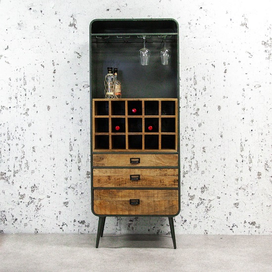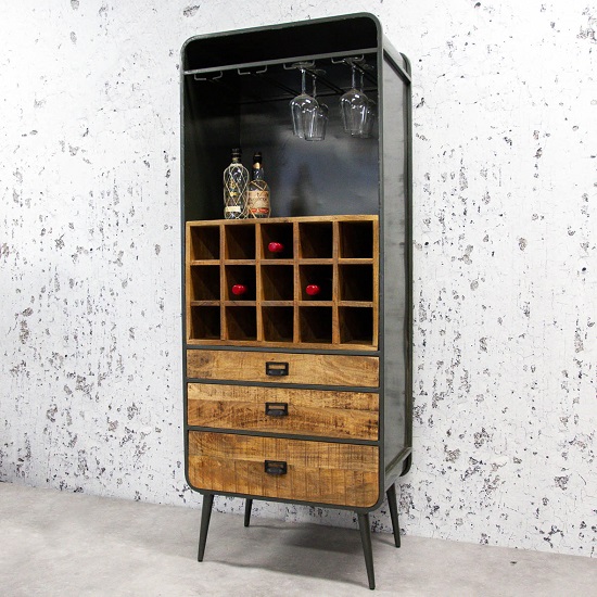 Industriële wijnkast met mangohout is speciaal voor de wijn liefhebber.