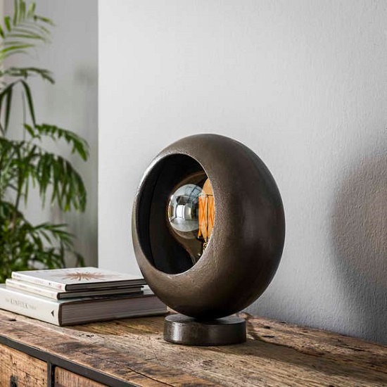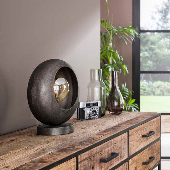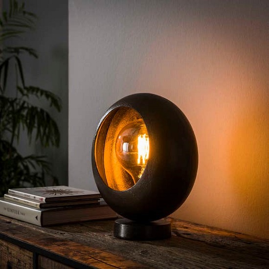 Tafellamp chique industrieel is uitgevoerd in zand gegoten aluminium met een zwart nikkel finish.